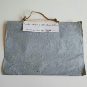 Zoek een mooie tekst of afbeelding of teken dit eerst op papier voordat je het gaat overtrekken met grafietpapier op het hout.
